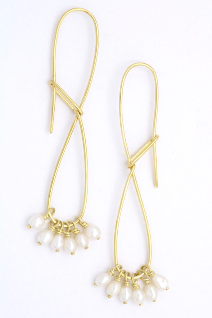 “Μονοκονδυλιά III” Σκουλαρίκια ασημένια με μαργαριτάρια