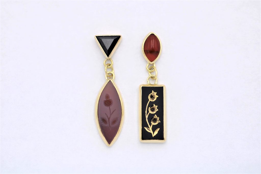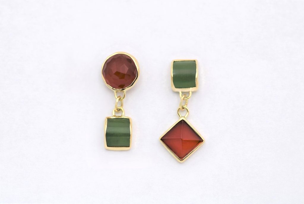 “Ισορροπημένη ασυμμετρία” Σκουλαρίκια ασημένια με καρνεόλ και όνυχες