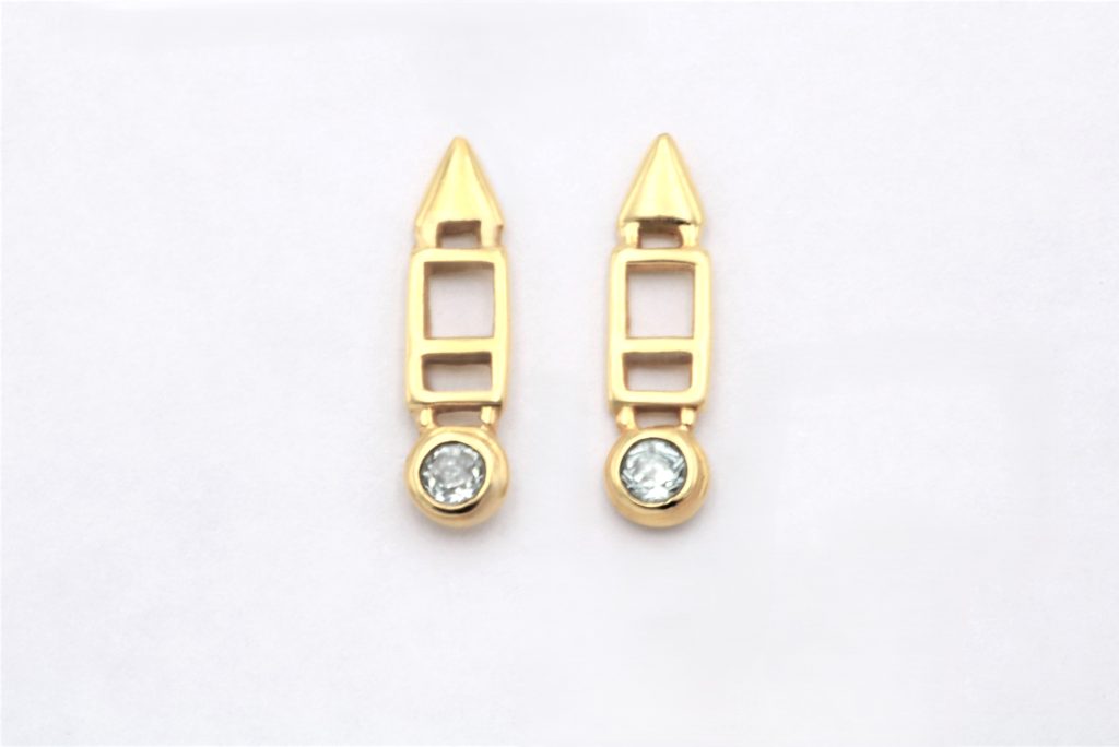 “Δορυφόρος Σελήνης” Σκουλαρίκια χρυσά με γεώδη χαλαζία και διαμάντια